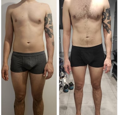 In soli quattro mesi di allenamento mirato con i sovraccarichi, abbiamo ottenuto un notevole incremento della massa muscolare, affiancato da consigli nutrizionali personalizzati e da un costante lavoro sulla motivazione.