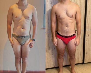 Dopo un percorso di dimagrimento rapido, Vittorio ha deciso di iniziare con me un programma mirato alla tonificazione e all’aumento della massa muscolare. A distanza di un anno, grazie a una programmazione strutturata con allenamenti con sovraccarichi e sessioni di lavoro aerobico, abbiamo ottenuto ottimi risultati: miglioramento della composizione corporea, incremento della massa muscolare e riduzione delle circonferenze.